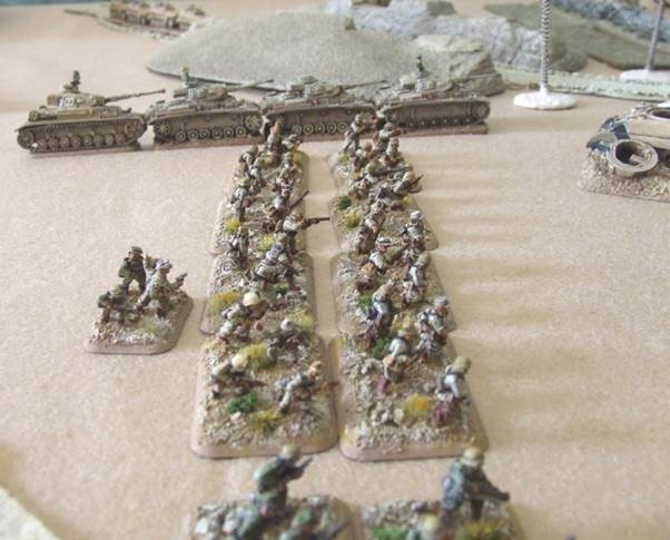 1. Deployment. At the start of each round use the Deployment Phase to perform all the actions that are preliminary to combat, such as change of tactical posture, sending Orders, testing for Charges and testing for other events such as a unit's success at scouting or movement through difficult terrain. You should think carefully about your tactics before you issue directions. For example, if a command has been on the defensive (with Hold Orders) and the enemy attack is faltering, you may decide to attack soon. Think ahead and send an Attack order some rounds in advance. Once the order arrives and you want to encourage the men to assault an enemy position, then send their commander to join the key unit BEFORE you test for the assault. Sending him afterwards will be too late. Remember to allow some margin for delays and errors such as a misinterpretation of Orders. This is part of the "fog of battle" built into Iron Tigers. You will find that it is quite a challenge to control a battle even with modern aids such as direct radio contact. It gives the sensation of how it must have been and you may feel more sympathy for generals of those times after the experience.