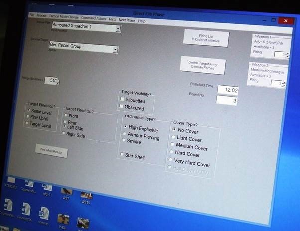 3. Direct Fire. For Direct Fire, the player chooses the unit from the drop down list, chooses the target and adjust the target conditions (ie range, cover type etc). Then clicks on the Fire button at the bottom of the form. The losses resulting will be displayed immediately. If a unit is firing on more than one target then the player can split the fire according to the number of elements remaining in the unit.